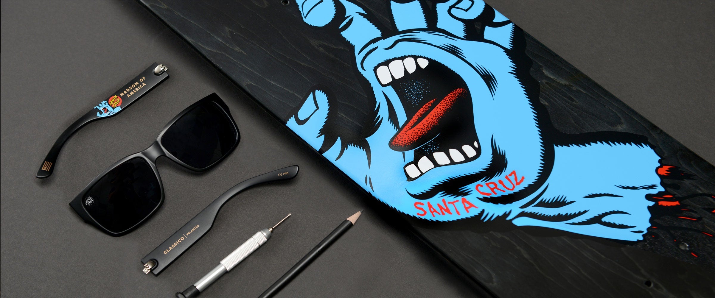 Madson, in collaboration with Santa Cruz Skateboards, is proud to introduce a new collection of sunglasses featuring the iconic Screaming Hand artwork.